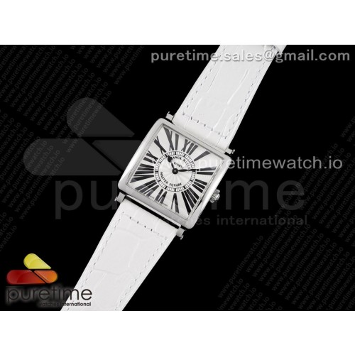 ZF공장 프랭크뮬러 마스터스퀘어 화이트다이얼 가죽스트랩 Master Square SS Ladies ZF 1:1 Best Edition White Black Roman Dial on White Leather Strap Ronda Quartz