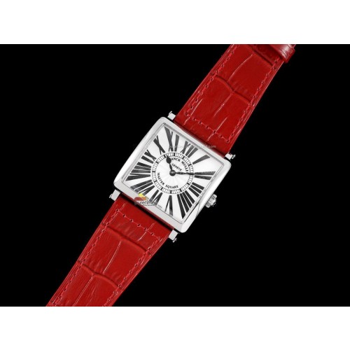 ZF공장 프랭크뮬러 마스터스퀘어 화이트다이얼 가죽스트랩 Master Square SS Ladies ZF 1:1 Best Edition White Black Roman Dial on Red Leather Strap Ronda Quartz > 프랭크뮬러