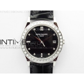 ZF공장 칼라트라바 블랙다이얼 가죽스트랩 Calatrava 5298P-012 SS T Crystal Bezel ZF 1:1 Best Edition Black Dial on Black Leather Strap A324CS