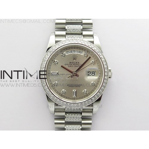 BP공장 롤렉스 데이데이트 36미리 실버다이얼 2836 Day-Date 36 128239 SS/Crystal BP Best Edition Silver Crystal Markers Dial on SS President Bracelet A2836
