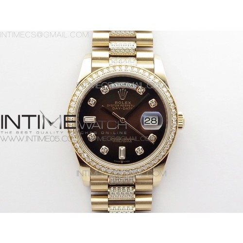BP공장 롤렉스 데이데이트 36미리 로골 브라운다이얼 2836 Day-Date 36 128235 RG/Crystal BP Best Edition Brown Crystal Marker Dial on RG President Bracelet A2836