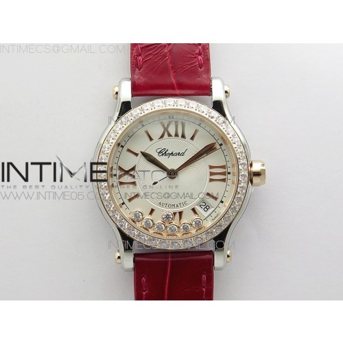 YY공장 쇼파드 해피스포츠 36미리 로즈골드콤비 화이트다이얼 가죽스트랩 HAPPY SPORT AUTOMATIC SS/RG 36MM CRYSTAL YYF 1:1 BEST EDITION WHITE DIAL ON RED LEATHER STRAP A2892