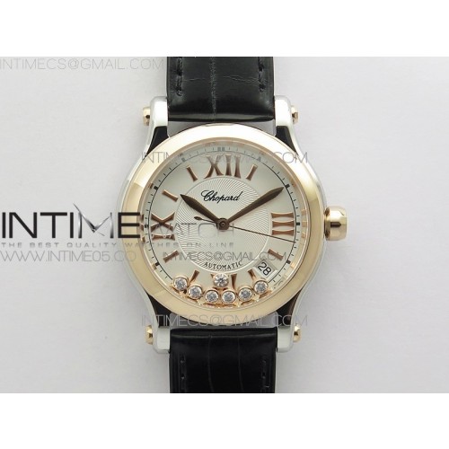 YY공장 쇼파드 해피스포츠 36미리 로즈골드금통 화이트다이얼 가죽스트랩 HAPPY SPORT AUTOMATIC RG 36MM CRYSTAL YYF 1:1 BEST EDITION WHITE DIAL ON BLACK LEATHER STRAP A2892