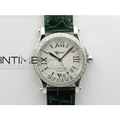 YY공장 쇼파드 해피스포츠 36미리 화이트다이얼 그린가죽스트랩 HAPPY SPORT AUTOMATIC SS 36MM CRYSTAL YYF 1:1 BEST EDITION WHITE DIAL ON GREEN LEATHER STRAP A2892