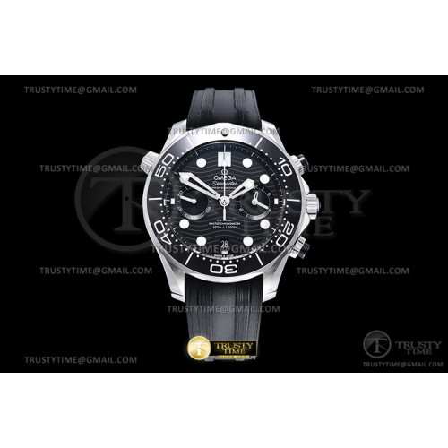 OM공장 오메가 2018 씨마스터 300 크로노그래프 스틸 블랙다이얼 러버스트랩 Seamaster 300m 2018 Chrono SS/RU Black OMF Asia 9900