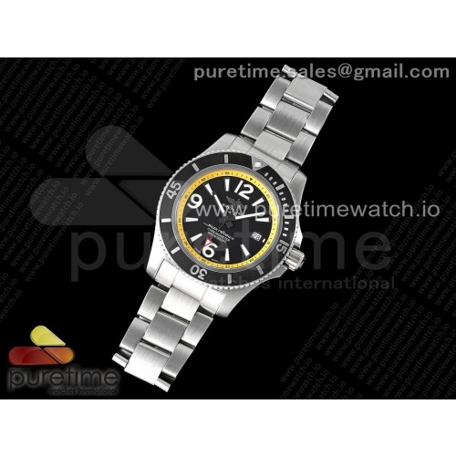 TF공장 브라이틀링 슈퍼오션 44 스틸 블랙다이얼 옐로우이너베젤 블랙베젤 브레이슬릿 Superocean Automatic 44 TF 1:1 Best Edition Black Dial Black/Yellow Bezel on SS Bracelet A2824
