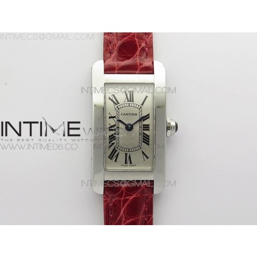 8848공장 까르띠에 탱크 아메리칸워치 19 스틸 다이아몬드베젤 실버다이얼 레드악어스트랩
