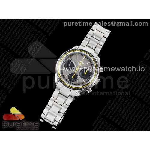HR공장 오메가 스피드마스터 크로노그래프 스틸 그레이다이얼 옐로우포인트 브레이슬릿 Speedmaster Racing Master SS HRF 1:1 Best Edition Gray/Black Dial on SS Bracelet A7750 > 오메가