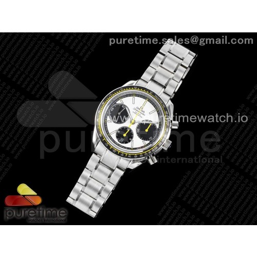 HR공장 오메가 스피드마스터 크로노그래프 스틸 화이트 팬더다이얼 옐로우포인트 브레이슬릿 Speedmaster Racing Master SS HRF 1:1 Best Edition White/Black Dial on SS Bracelet A7750
