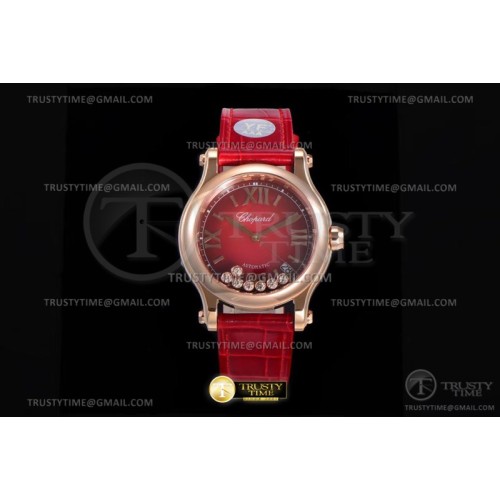 YF공장 쇼파드 해피스포츠 로즈골드금통 레드옴브레다이얼 가죽스트랩 Happy Sports 36mm RG/LE Red YF A2891
