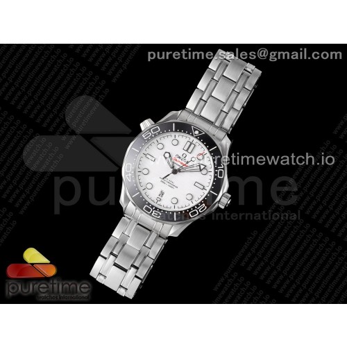 TWS공장 오메가 씨마스터 다이버 300M 스틸 화이트다이얼 브레이슬릿 Seamaster Diver 300M TWS 1:1 Best Edition Black Ceramic White Dial on SS Bracelet A8800