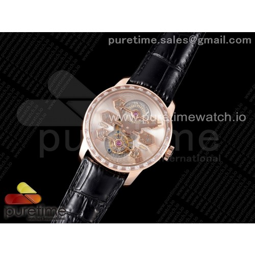 JB공장 지라드페리고 브릿지 투어빌론 로즈골드금통 다이아몬드베젤 골드다이얼 가죽스트랩 GP Bridges 44mm Tourbillon RG JBF Best Edition Diamonds Bezel RG Dial on Black Leather Strap