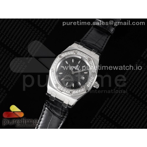 • TW공장 오데마피게 로얄오크오프쇼어 레이디 37 스틸 다이아몬드베젤 블랙다이얼 가죽스트랩 Royal Oak Offshore Ladies 37mm SS TWF Best Edition Black Dial Diamonds Bezel on Black Leather Strap ETA Quartz