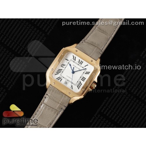 3K공장 까르띠에 산토스 라지 40 옐로우골드금통 화이트다이얼 가죽스트랩 Santos de Cartier 40mm RG 3KF 1:1 Best Edition White Dial on Gray Leather Strap MIYOTA 9015