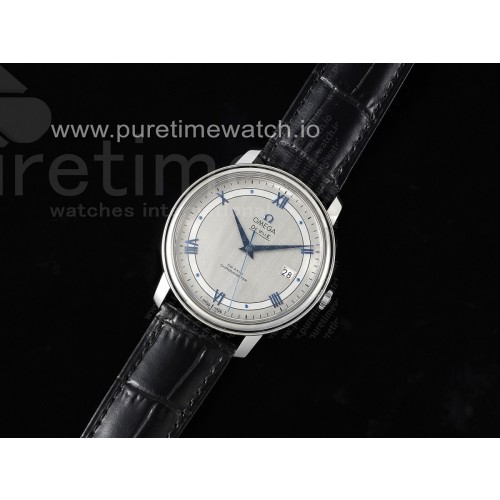 TWS공장 오메가 드 빌 스틸 실버텍스쳐다이얼 블루인덱스 가죽스트랩 De Ville SS TWF 1:1 Best Edition Gray Dial Blue Markers on Black Leather Strap MIYOTA 9015