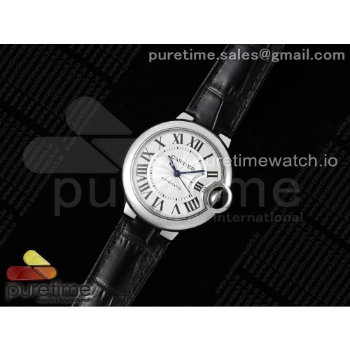 3K공장 까르띠에 발롱블루 33 오토메틱 스틸 화이트다이얼 가죽스트랩 Ballon Bleu 33mm SS 3KF 1:1 Best Edition White Dial on Black Leather Strap A076