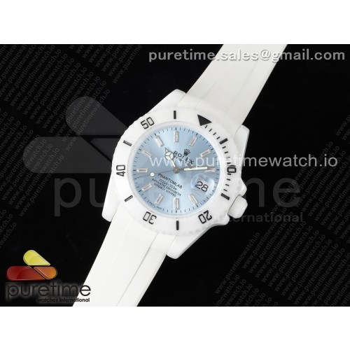 5G공장 롤렉스 커스텀 서브마리너 40 풀세라믹 아이스블루다이얼 바게트다이아몬드인덱스 러버스트랩 Submariner 40mm White Ceramic 5GF Best Edition Ice Blue Dial on White Rubber Strap SA3135