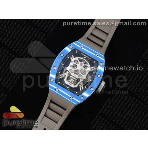 3K공장 리차드밀 RM052 NTPT블루카본케이스 스컬다이얼 러버스트랩 RM052 Skull Blue NTPT Real Tourbillon 3KF 1:1 Best Edition Skull Dial on Gray Rubber Strap