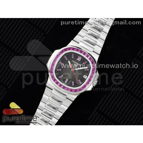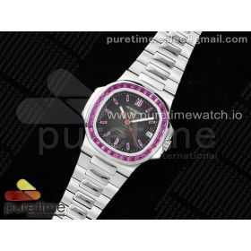GR공장 파텍필립 노틸러스 5711 스틸 퍼플다이아몬드바게트베젤 그레이다이얼 퍼플바게트인덱스 브레이슬릿 Nautilus 5711 SS GRF 1:1 Best Edition Gray Dial Purple Diamonds Bezel on SS Bracelet 324CS