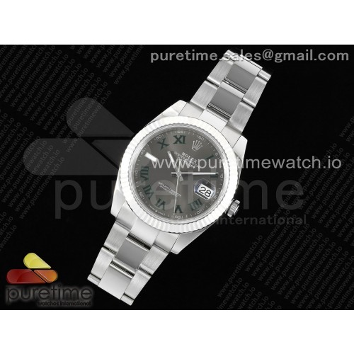 WF공장 롤렉스 데이저스트 41 스틸 슬레이트로만다이얼 플루티드베젤 오이스터브레이슬릿 윔블던 DateJust 41 126334 WF 1:1 Best Edition 904L Steel Gray Dial Green Roman Marker on Oyster Bracelet VR3235