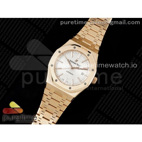 ZF공장 오데마피게 로얄오크 41 로즈골드금통 화이트다이얼 브레이슬릿 Royal Oak 41mm 15400 RG ZF 1:1 Best Edition White Textured Dial on RG Bracelet V2 SA3120 Super Clone