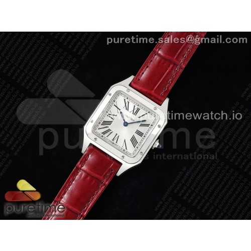 F1공장 까르띠에 산토스 뒤몽 미디움 27.5 스틸 실버다이얼 레드가죽스트랩 Santos Dumont 27.5mm IWSF Best Edition Silver Dial on Red Leather Strap Quartz