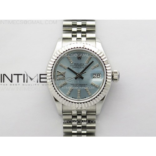 • APS공장 롤렉스 레이디 데이저스트 28 스틸 아이스블루다이아몬드다이얼 플루티드베젤 쥬빌레브레이슬릿 Datejust 28mm 279179 SS APSF Best Edition Ice Blue Dial Sticks Crystals Markers on SS Jubilee Bracelet NH05