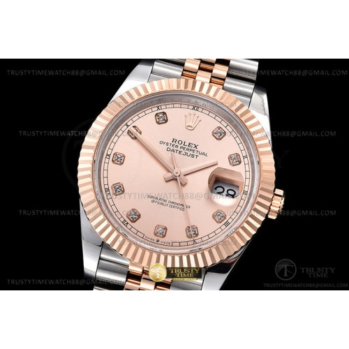 GM공장 롤렉스 데이저스트 41 로즈골드콤비 핑크다이얼 플루티드베젤 다이아몬드인덱스 주빌레브레이슬릿 DJ2 41mm Jub Flt 904L RG/SS RG/Dia GMF V2 VR3235