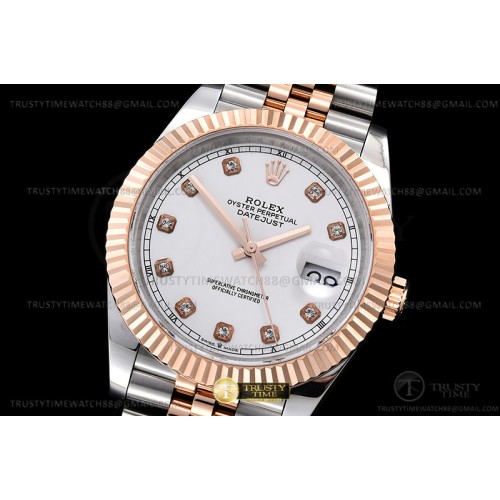 GM공장 롤렉스 데이저스트 41 로즈골드콤비 화이트다이얼 플루티드베젤 다이아몬드인덱스 주빌레브레이슬릿 DJ2 41mm Jub Flt 904L RG/SS Wht/Dia GMF V2 VR3235