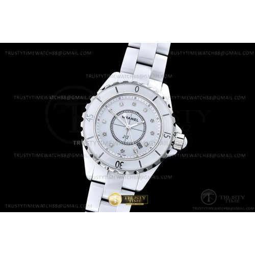 XF공장 샤넬 J12 화이트다이얼 다이아몬드인덱스 33mm 여성용 J-12 Ladies 33mm CER/CER Wht/Dia XF Sw Qtz