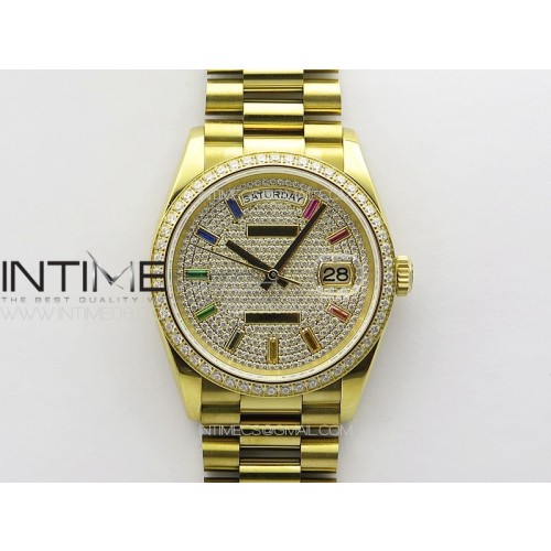 RA공장 롤렉스 데이데이트 36 옐로우금통 다이아몬드베젤 프레지던트브레이슬릿 Daydate 128238 36mm Crystals Bezel YG RAF Best Edition Color Diaminds Dial on SS President Bracelet A2836 > 시계쇼핑