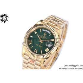 • GM공장 롤렉스 데이데이트 40 옐로우골드금통 그린다이얼 로만인덱스 프레지던트브레이슬릿 텅스텐 2836 DDay Date 40 YG 904L Steel GMF 1:1 Best Edition Green Dial on YG Bracelet A2836(Tungsten Heavy Version)