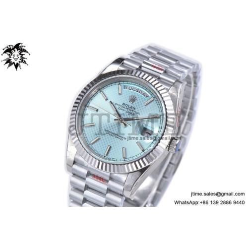 GM공장 롤렉스 데이데이트 40 스틸 아이스다이얼 프레지던트브레이슬릿 텅스텐 3255 DDay Date 40 SS 904L Steel GMF 1:1 Best Edition Polished Bezel Ice Blue Dial on SS Bracelet A3255 (Tungsten Heavy Version) > 롤렉스