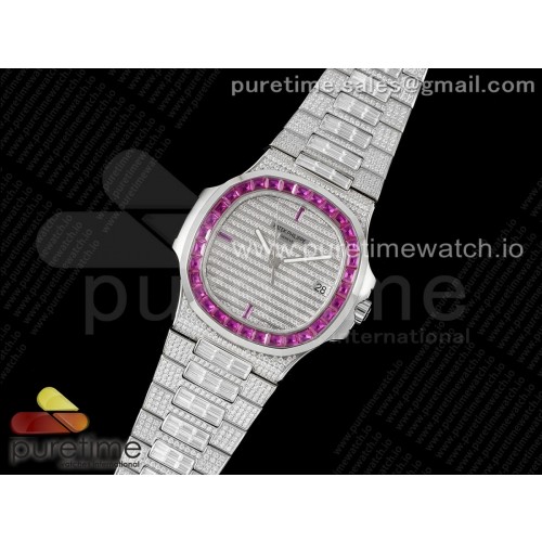 TW공장 파텍필립 노틸러스 점보 5711 퍼플다이아몬드베젤 풀다이아몬드 스틸 Nautilus 5711 SS TWF Full Diamonds Purple Diamonds Bezel Diamonds Dial on Diamonds Bracelet A324