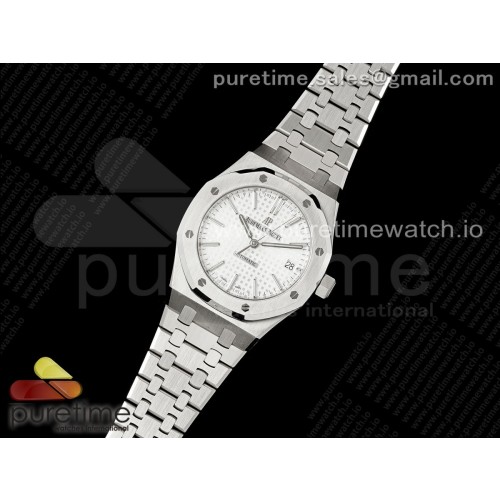 APS공장 오데마피게 로얄오크 15450 화이트다이얼 브레이슬릿 Royal Oak 37mm 15450 SS APSF 1:1 Best Edition White Textured Dial on SS Bracelet SA3120 Super Clone