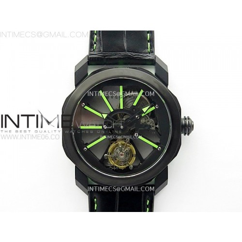 AX공장 불가리 옥토 PVD블랙케이스 그린스켈레톤다이얼 가죽스트랩 투어빌론 Octo 102910 PVD AXF Best Edition Skeleton Dial on Brown Leather Strap Asian BVL206 Tourbillon Movemen