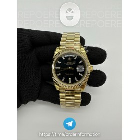 • GM공장 롤렉스 데이데이트 40 옐로우골드금통 블랙다이얼 바게트인덱스 프레지던트브레이슬릿 텅스텐 2836 Day Date 40 YG 904L Steel GMF 1:1 Best Edition black Dial on YG Bracelet A2836