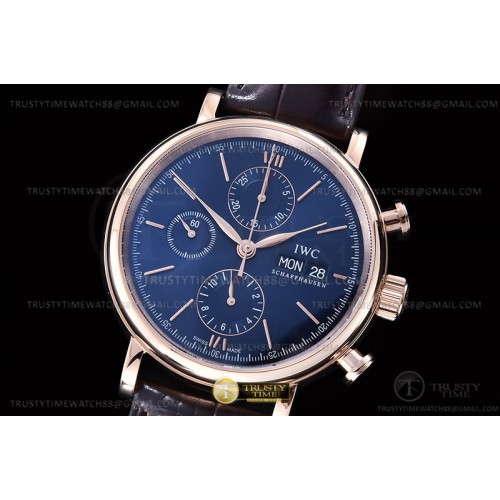 TW공장 IWC 포르토피노 크로노 로즈골드금통 블루다이얼 골드마커 가죽스트랩 Portofino Chrono IW3910 RG/LE Blue/RG Stk TWF A7750 > IWC