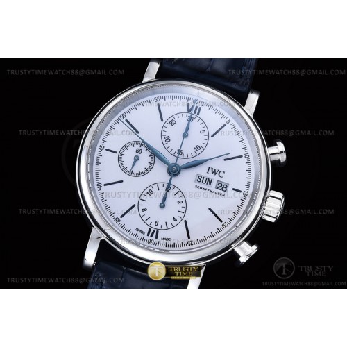 TW공장 IWC 포르토피노 크로노 스틸 화이트다이얼 블루마커 가죽스트랩 Portofino Chrono IW3910 SS/LE Wht/Blk Stk TWF A7750 > IWC