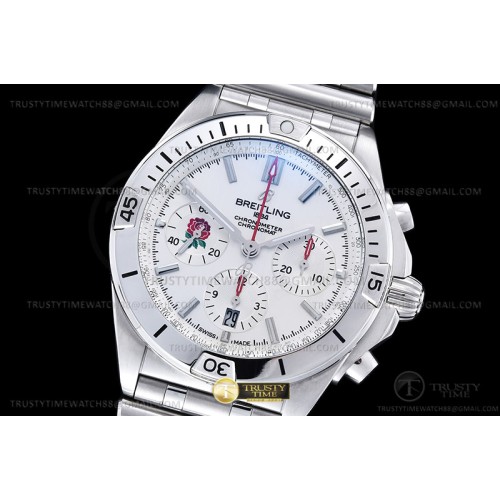 BLS공장 브라이틀링 크로노맷 B01 42 식스 네이션즈 잉글랜드 화이트다이얼 브레이슬릿 Chronomat B01 England SS/SS Wht/Stk BLS Asia 7750