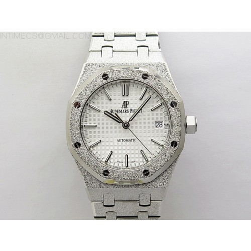 APS공장 오데마피게 로얄오크15454 프로스티드골드 새틴폴리싱 스틸 화이트다이얼 Royal Oak 37mm 15454 Frosted SS APSF 1:1 Best Edition White Textured Dial on Frosted SS Bracelet SA3120 Super Clone > 시계쇼핑