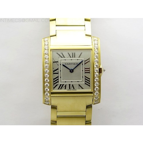 8848공장 까르띠에 탱크 프랑세즈 레이디즈 27mm 옐로우골드금통 다이아몬드베젤 브레이슬릿 Tank Francaise Ladies 27mm YG/Diamonds Bezel 8848F 1:1 Best Edition Silver Dial on YG Bracelet Ronda Quartz > 시계쇼핑
