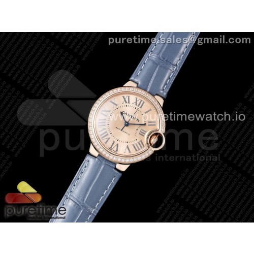 AF공장 까르띠에 발롱블루 33mm 로즈골드금통 다이아케이스 로즈골드다이얼 블루가죽스트랩 Ballon Bleu 33mm RG AF 1:1 Best Edition RG Dial Diamonds Bezel on Blue Leather Strap SEIKO NH05A