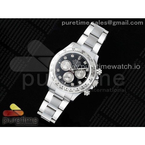 QF공장 롤렉스 스틸 데이토나 블랙8P다이아몬드다이얼 브레이슬릿 Daytona 116509 QF 1:1 Best Edition Black/White Diamonds Dial on SS Bracelet SH4130 V3 (Gain Weight)