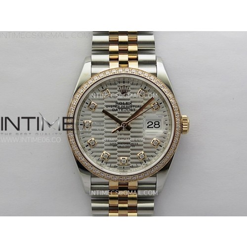 VS공장 롤렉스 데이저스트 36 옐로우골드콤비 플루티드실버다이얼 다이아몬드베젤 쥬빌레브레이슬릿 DateJust 36 126281 904L SS/RG VSF 1:1 Best Edition Silver Fluted Dial Diamonds Markers on Jubilee Bracelet VS3235