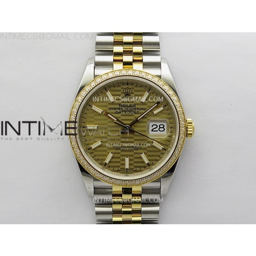 • VS공장 롤렉스 데이저스트 36 옐로우골드콤비 플루티드골드다이얼 다이아몬드베젤 쥬빌레브레이슬릿 DateJust 36 126283 904L SS/YG VSF 1:1 Best Edition Gold Fluted Dial Sticks Markers on Jubilee Bracelet VS3235