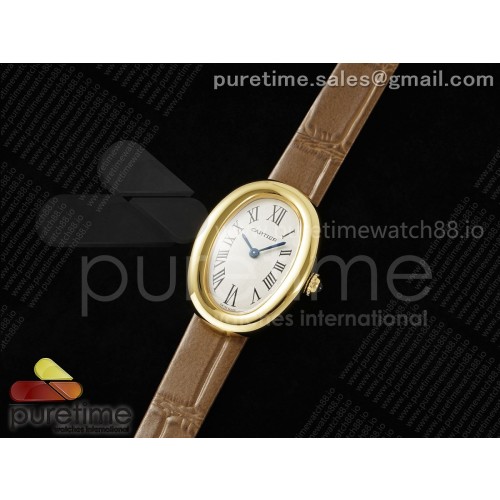 AF공장 까르띠에 베누아 옐로우골드금통 화이트다이얼 브라운스트랩 Baignoire Watch YG AF 1:1 Best Edition White Dial on Brown Croco Strap RONDA Quartz > AF 까르띠에 쿼츠 시리즈 주력