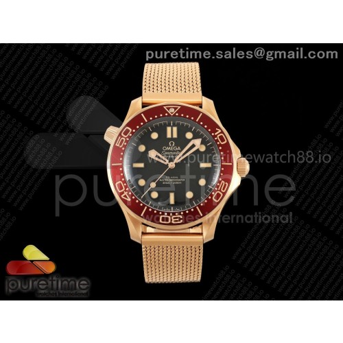 VS공장 오메가 다이버300m 로즈골드금통 버건디베젤 블랙다이얼 메쉬스트랩 Seamaster 300M Diver RG VSF 1:1 Best Edition Black Dial on Mesh Bracelet A8806